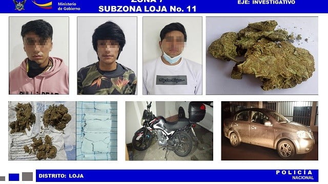Se presume que los hoy aprehendidos para el expendio de la sustancia, tenían como su territorio, el sector La Tebaida centro sur de Loja y sus alrededores y para ello utilizaban un vehículo y una motocicleta, además se les aprehendió dos terminales móviles y 15 dólares americanos