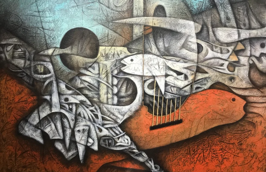 Las estructuras sociales se conmueven alterando la percepción de una naturaleza continuamente transformada por falta de sensibilidad humana. Así interpreta el movimiento de los aconteceres, las líneas definitivas de las formas no tienen límites y el tesoro estético se reconvierte en un gran interrogante hasta la creación del velo atmosférico de los perjuicios a los que nos puede llevar no cuidar de nuestro medio.