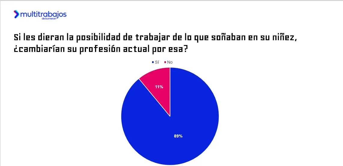 En este contexto, el 89% de los talentos cambiaría su actual ocupación por la que soñaba en su niñez si tuviera la oportunidad; mientras que el 11% prefiere mantener su situación actual.