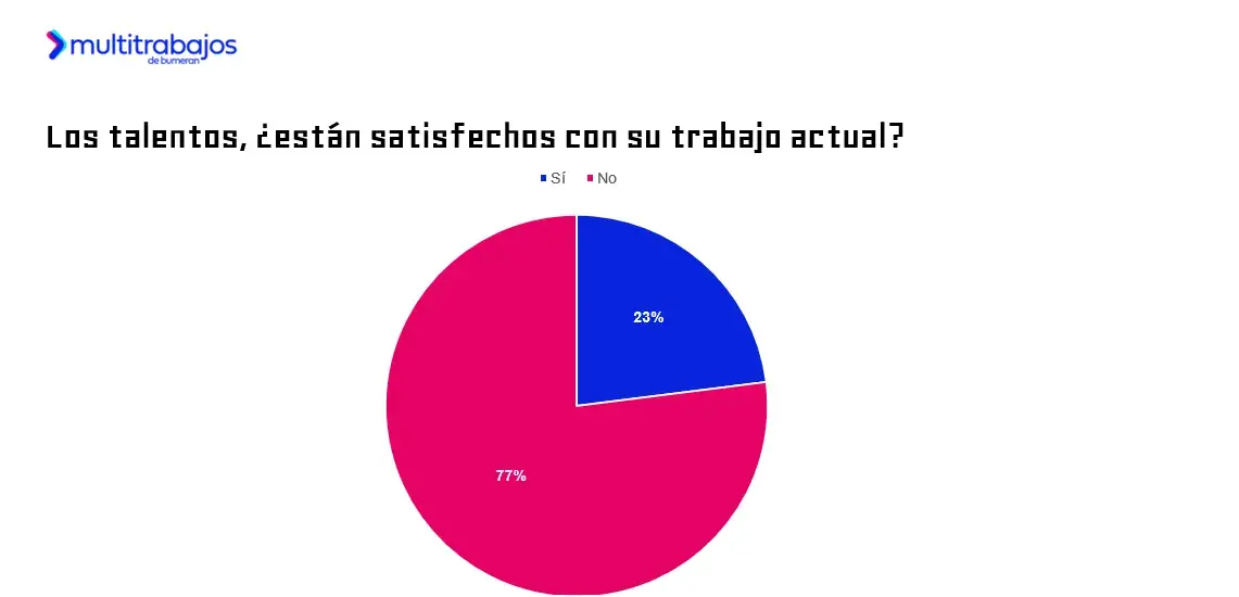 El 77% de los talentos afirma no sentirse satisfecho con su trabajo actual. En Ecuador solo un 23% está satisfecho con el empleo que desarrolla actualmente.