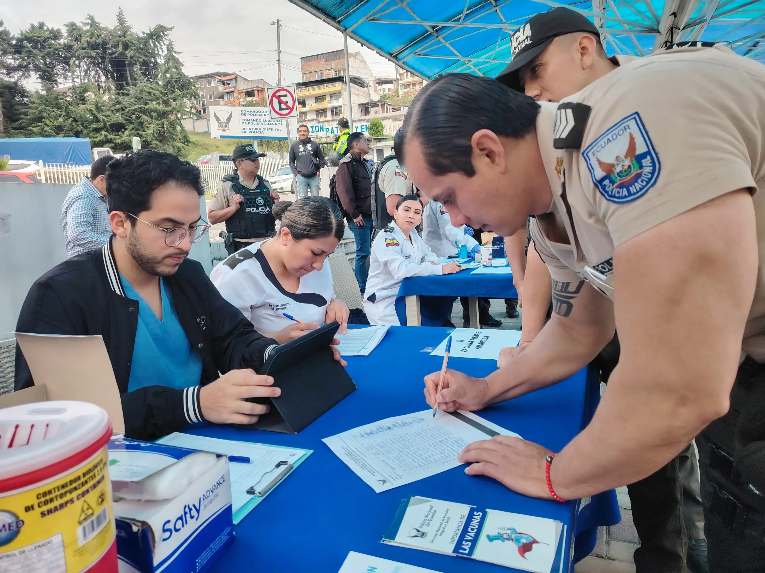 Loja.- Personal del Subcentro de Salud de Policía Loja y el Ministerio de Salud, llevaron a cabo la campaña de vacunación contra la fiebre amarilla al personal uniformado que aún no contaba con la misma.