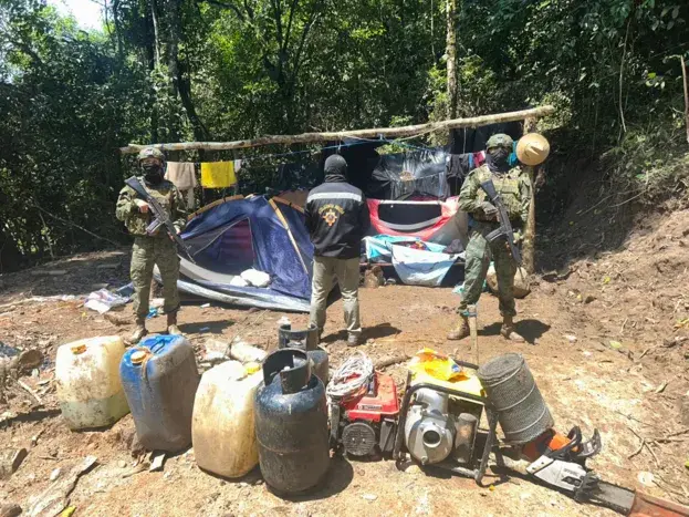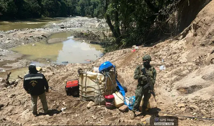 Durante el operativo, las fuerzas militares decomisaron y destruyeron maquinaria pesada y diversos implementos empleados en la extracción ilegal de recursos. Entre las evidencias se registran una excavadora marca Kobelco, una clasificadora tipo Z, una draga artesanal, un generador eléctrico, bombas de agua y presión, así como un motor de succión.