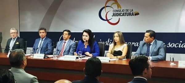 Quito.- El Consejo de la Judicatura (CJ), en el marco de sus competencias, emprenderá todas las acciones legales pertinentes contra las personas que utilicen el nombre de la institución o de sus autoridades para solicitar dinero o favores a cambio de nombramientos de notarías a nivel nacional. Así lo señaló la Presidenta del CJ, María del Carmen Maldonado Sánchez, en rueda de prensa realizada este 15 de enero de 2020.