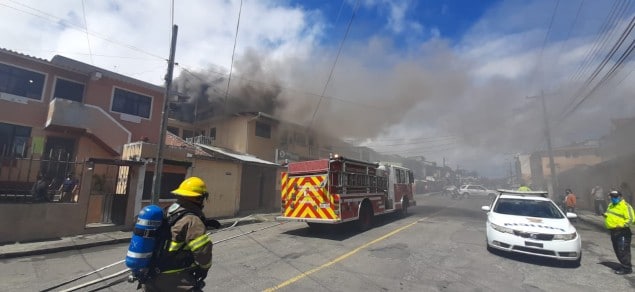 incendio estructural en el sector de Yaguarcuna en las calles Romerillos-Hualtacos.(fotos cortesía @cbomberosloja ) noticia en desarrollo pic.twitter.com/1OhDTyVxip