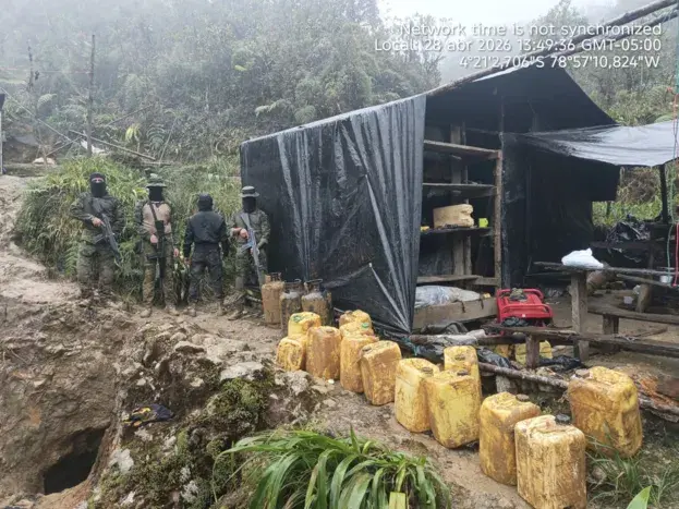 Asimismo, las fuerzas armadas destruyeron equipos utilizados para actividades ilícitas, incluyendo generadores eléctricos, una motosierra, 11 rotomartillos, una soldadora y cilindros de gas.