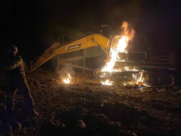 Una excavadora marca Lovol, modelo 220D (destruida).