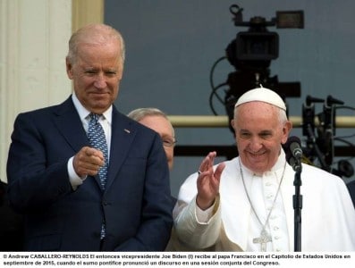 En 2015, el papa Francisco se reunió con el entonces vicepresidente Biden en Washington cuando el sumo pontífice pronunció un discurso en el Capitolio de Estados Unidos ante el pleno del Congreso.