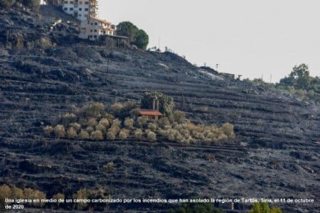 En Mashta al Helu, en la región de Tartús, «los incendios causaron muchos daños» y las «tierras tardarán años en recuperarse», dice el alcalde Joseph Eid.