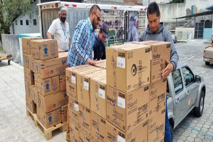 Quito.- Tras iniciar la entrega de los primeros lotes de fármacos y dispositivos médicos adquiridos por emergencia. Cumpliendo la disposición presidencial, los insumos se distribuyen en todo el país para fortalecer la atención en hospitales y centros de salud.