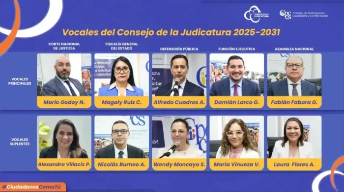 Quito.- El Pleno del Consejo de Participación Ciudadana y Control Social (Cpccs), luego de nueve meses, procedió a designar a los vocales principales y suplentes del Consejo de la Judicatura para el periodo 2025-2031.