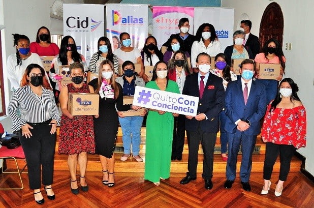 Quito.- (@srradioEc).- El pasado martes 20 de abril Grupo Corporativo CID conformado por Farmacid S.A., Pharmabrand S.A., Blenastor S.A, Tejec S.A, Casa Linda, GENA y Baguette S.A, realizaron la entrega simbólica de 15 unidades de capital semilla con productos de sus empresas a la red de mujeres en acción “Dalias” de la Secretaría de Inclusión Social del Municipio del Distrito Metropolitano de Quito, quienes luego de cinco meses culminaron sus talleres y capacitaciones que les permitirán abrirse camino hacia una economía independiente e iniciar sus propios emprendimientos.