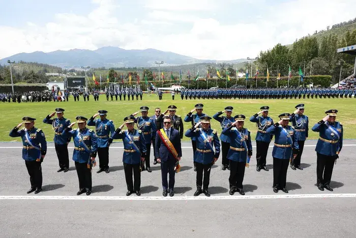 El acto incluyó ascensos a Generales de Distrito, cambio de insignias, entrega del bastón de mando, condecoraciones y la entrega del sable de honor al presidente Noboa, como símbolo de respeto institucional y compromiso con el Estado.