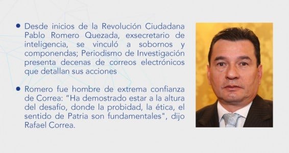Antes de convertirse en uno de los brazos ejecutores del espionaje durante el régimen de Rafael Correa Delgado, el exsecretario de la Senain, Pablo Romero Quezada, debió pasar varias pruebas de confianza. La amistad con los hermanos Raúl y Ricardo Patiño Aroca, lo catapultó en 2007 al umbral del escenario de las grandes hazañas del correísmo. En 2008, Romero ya se estrenó en el mecanismo de los sobornos, un sistema criminal que luego se convertiría en una verdadera industria con el caso Arroz Verde. Según documentos revisados, en 2008, Gustavo Texeira, ejecutivo de Odebrecht, entregó a Pablo Romero, 600 mil dólares (que en clave llamaron llantas), cuando ocupaba un importante cargo en el proyecto Baba. Tras la extradición de Romero, Periodismo de Investigación actualiza esta investigación publicada en 2017.