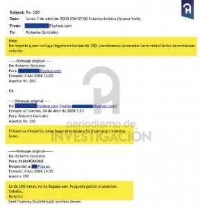 EI 20 de diciembre, Pablo Romero envía a Roberto González un email con el asunto «Fruta enviada» y luego dice «son los archivos de los envíos de frutas desde la gran comercializadora en NY hasta los supermercados que tú me indicaste».