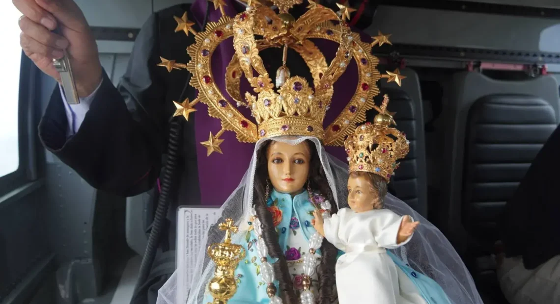 La mañana de este miércoles 20 de noviembre de 2024, abordo del helicóptero de la empresa privada “Aeromaster”, la sagrada imagen de la Virgen de El Cisne sobrevoló las zonas que han sido afectadas por los incendios forestales, que sobrepasa las 8 mil hectáreas de bosque primario.