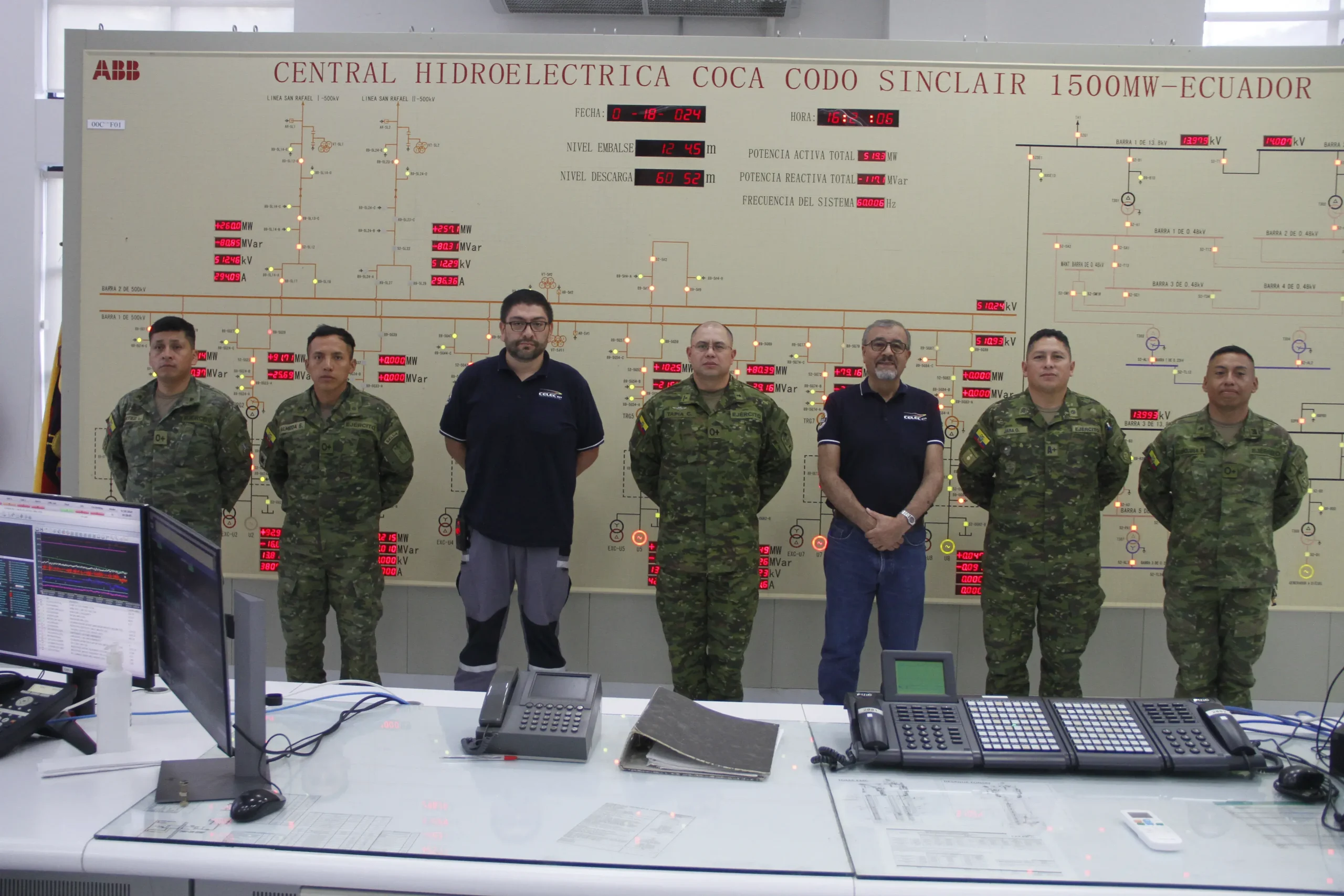 En una primea actividad, los oficiales, junto al Gerente de la Unidad de Negocio Coca Codo Sinclair, Jorge Goyes, y de técnicos de la central, realizaron un recorrido por la sala de control, la casa de máquinas y la subestación GIS, en donde conocieron sus sistemas y equipos.