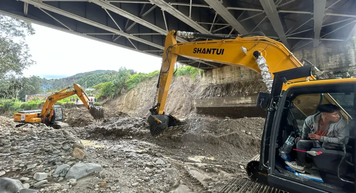 Para esta intervención, la Prefectura ha facilitado una máquina excavadora y, además, se gestionó piedra de escollera proveniente de Zamora Chinchipe, material que se utilizará en los trabajos de estabilización y protección del área afectada.