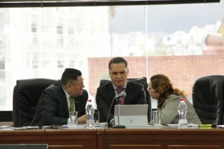 Quito (Pichincha).- Esta mañana, en el octavo piso de la Corte Nacional de Justicia, se instaló la audiencia de juzgamiento contra los jueces de Pastaza, Aurelio Q. y Bolívar T., por su presunta participación en el delito de cohecho.