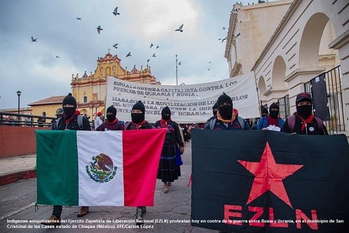 San Cristóbal de las Casas (México).- (EFE).- Miles de indígenas mexicanos y encapuchados que militan en el Ejército Zapatista de Liberación Nacional (EZLN) marcharon este domingo contra «todas las guerras capitalistas” en Chiapas, en el sureste mexicano, donde se solidarizaron con Ucrania.